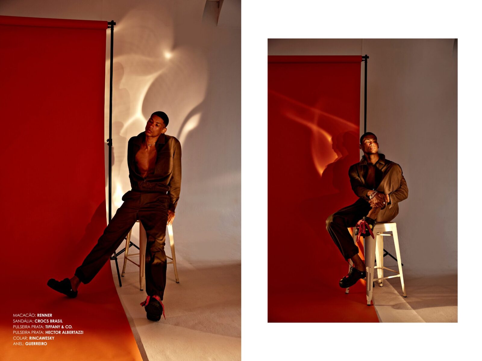 Direção criativa e styling – Diogo Brasiliano e Isabella Estevez (Ag Tout) / Fotos – Rafa Munner e Fábio Bataglia / Make up – Patrick PontesModelo – John Oliveira (Mix Models) / Estúdio – PP700